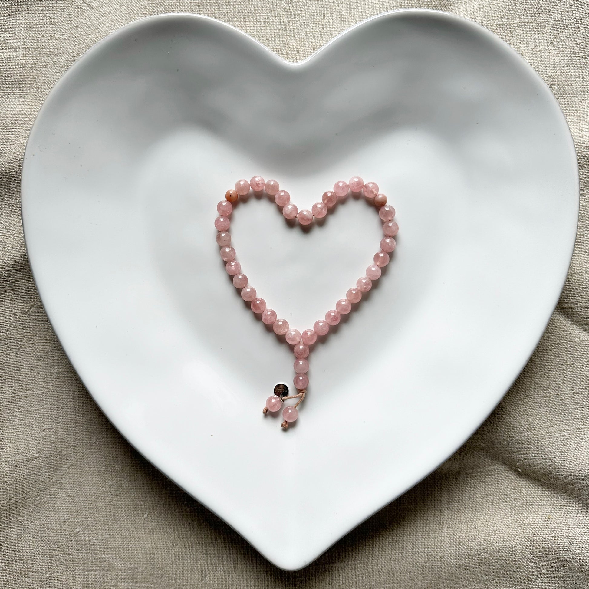 Delicate ‘gem of love’ Dalia beads hand-strung on cotton cord.