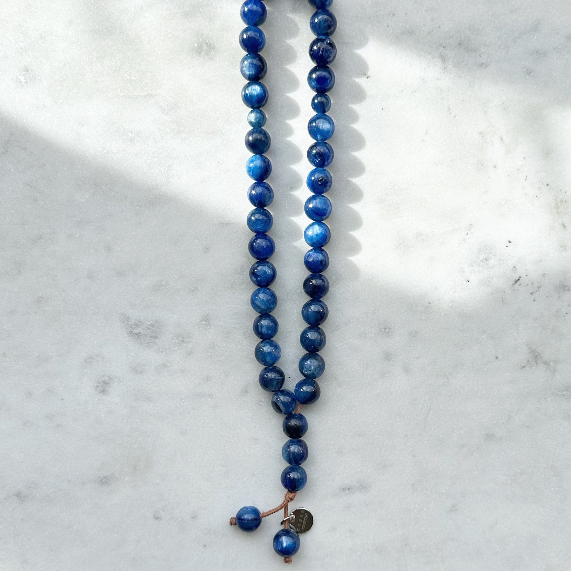 Deepening meditation and clarity with our striking blue Kyanite beads hand-strung on cotton cord.