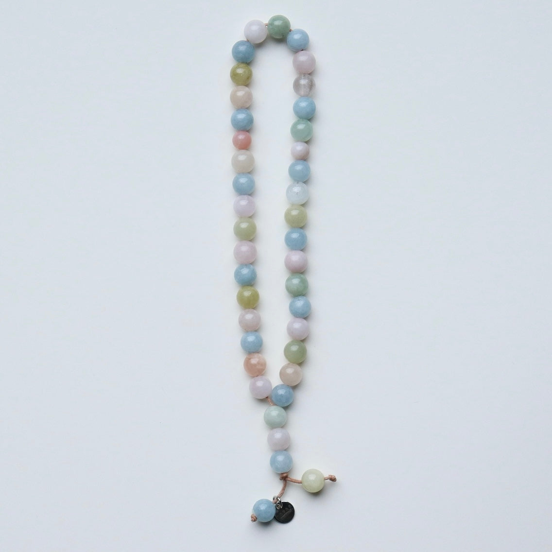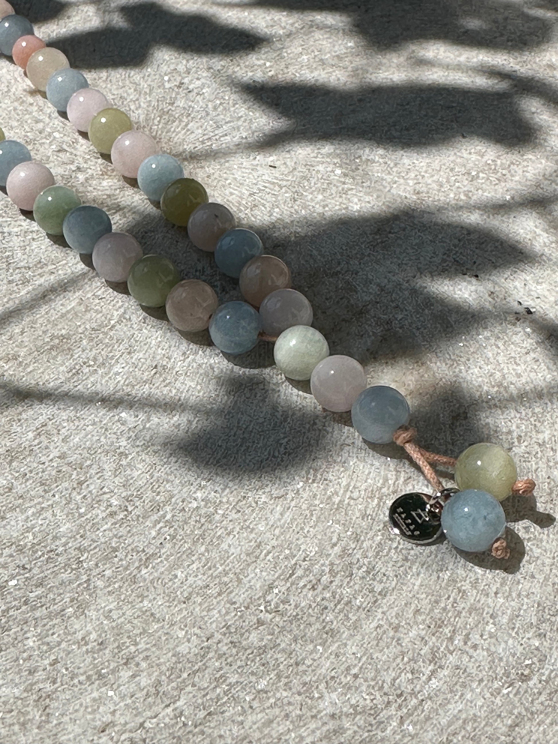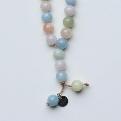 Endless rainbow Morganite rays in our Raya beads hand-strung on cotton cord.